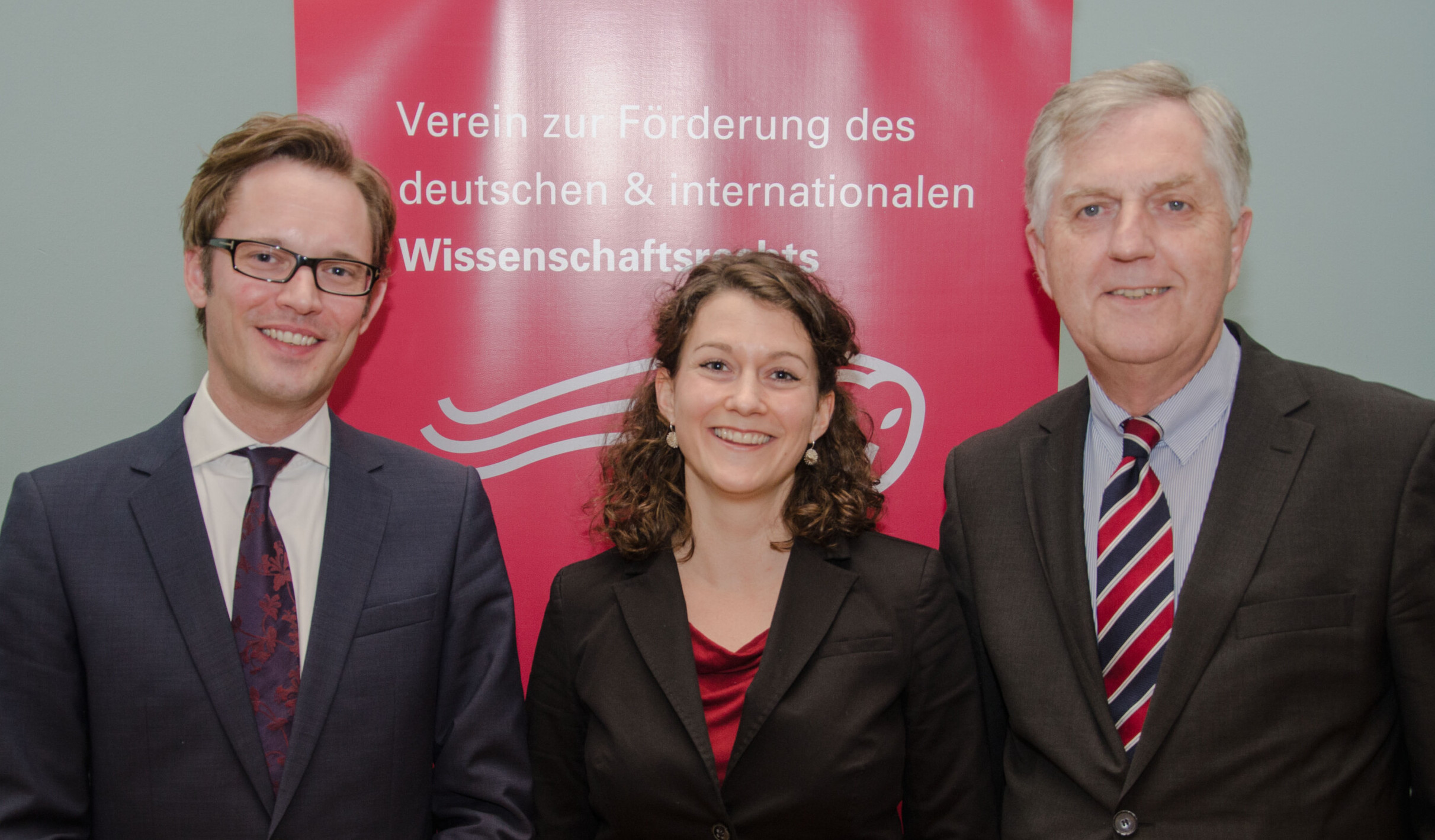 Der Preis für Wissenschaftsrecht wurde in diesem Jahr bereits zum dritten Mal vergeben. 2011 erhielt Professor Dr. Klaus F. Gärditz (Universität Bonn) als erster Preisträger den Preis für seine Habilitationsschrift „Hochschulorganisation und verwaltungsrechtliche Systembildung“. 2013 ging der Preis zu gleichen Teilen an Dr. Ilse-Dore Gräf sowie Dr. Jörg Stalleiken für ihre Dissertationen „Die wirtschaftliche Betätigung von Universitäten. Legitimation und Grenzen“ (Dr. Gräf) und „Drittmittelforschung im Einkommen- und Körperschaftssteuerrecht. Unter besonderer Beachtung der Abgrenzung steuerbarer wirtschaftlicher Tätigkeiten von steuerfreier hoheitlicher Betätigung staatlicher Hochschulen“ (Dr. Stalleiken).