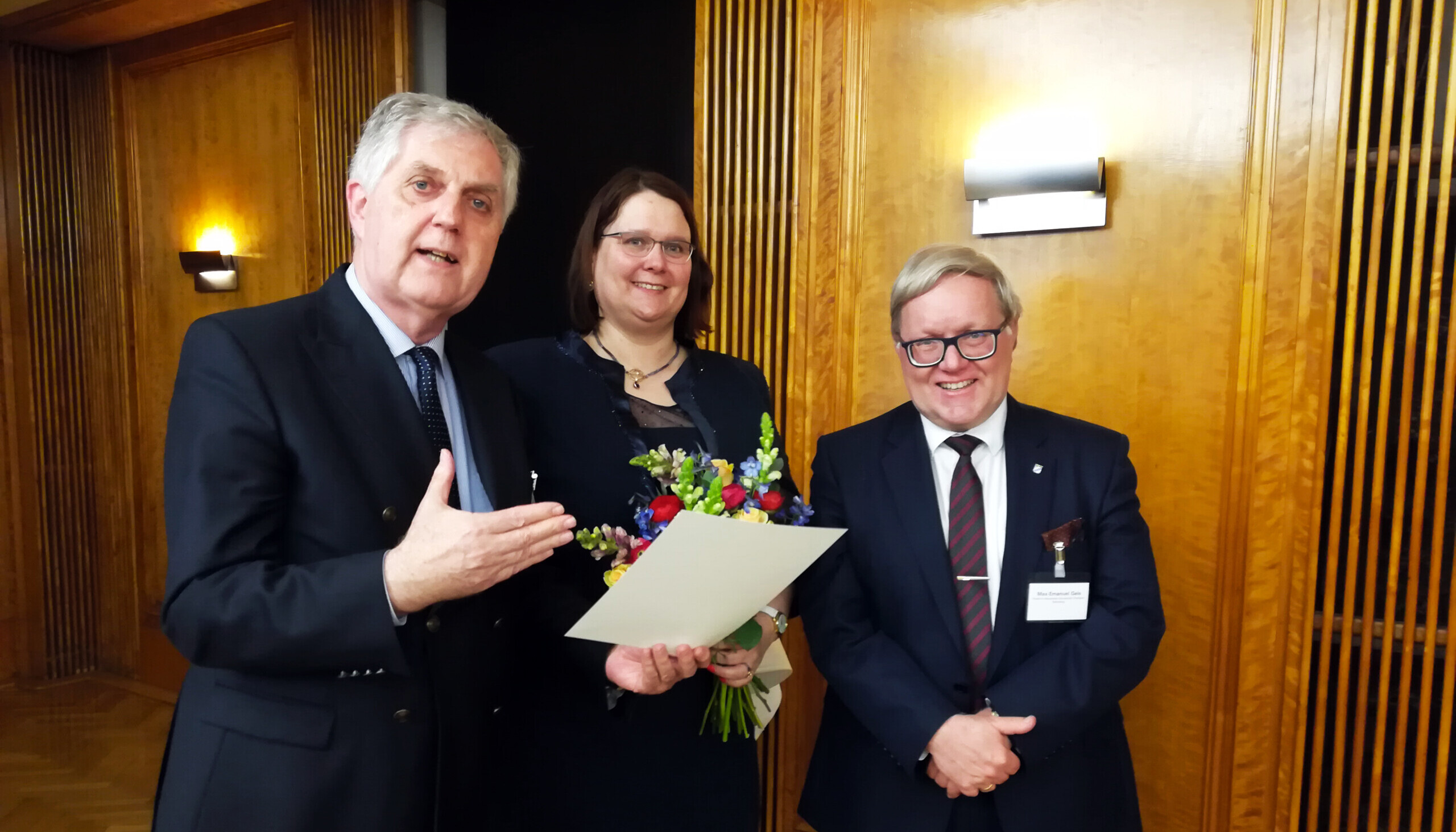 Bild: Prof. Pallme König (Vorsitzender des Vereins zur Förderung des deutschen & internationalen Wissenschaftsrechts), PD Dr. Margrit Seckelmann (Preisträgerin), Max-Emanuel Geis (Rechtswissenschaftler und ordentlicher Professor für Öffentliches Recht an der Friedrich-Alexander-Universität Erlangen-Nürnberg).